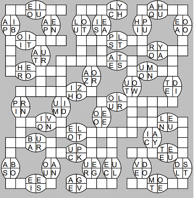 The only clues you have are the letter pairs we've given you in the grid. Each answer consists of a pair of words that share the letters that you'll write in the empty squares. In the example we've given you, we've filled in the letters S, E and W to make SINEW and SCREW. A few of the entries may have more than one possible answer, but only one will fit correctly with the rest of the puzzle.