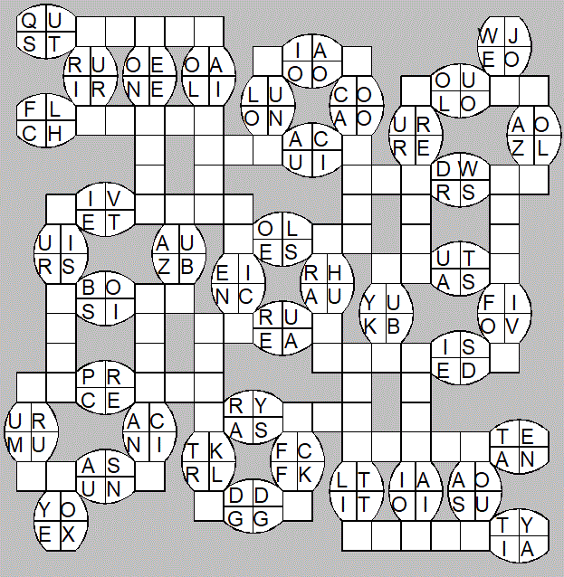 The only clues you have are the letter pairs we've given you in the grid. Each answer consists of a pair of words that share the letters that you'll write in the empty squares. In the example we've given you, we've filled in the letters S, E and W to make SINEW and SCREW. A few of the entries may have more than one possible answer, but only one will fit correctly with the rest of the puzzle.