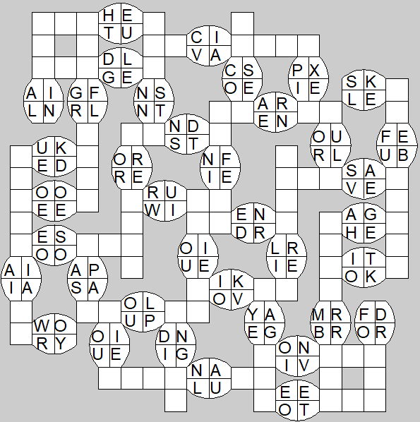 The only clues you have are the letter pairs we've given you in the grid. Each answer consists of a pair of words that share the letters that you'll write in the empty squares. In the example we've given you, we've filled in the letters S, E and W to make SINEW and SCREW. A few of the entries may have more than one possible answer, but only one will fit correctly with the rest of the puzzle.