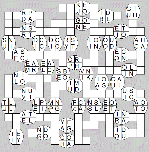 The only clues you have are the letter pairs we've given you in the grid. Each answer consists of a pair of words that share the letters that you'll write in the empty squares. In the example we've given you, we've filled in the letters S, E and W to make SINEW and SCREW. A few of the entries may have more than one possible answer, but only one will fit correctly with the rest of the puzzle.
