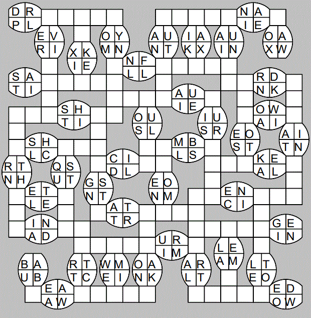 The only clues you have are the letter pairs we've given you in the grid. Each answer consists of a pair of words that share the letters that you'll write in the empty squares. In the example we've given you, we've filled in the letters S, E and W to make SINEW and SCREW. A few of the entries may have more than one possible answer, but only one will fit correctly with the rest of the puzzle.