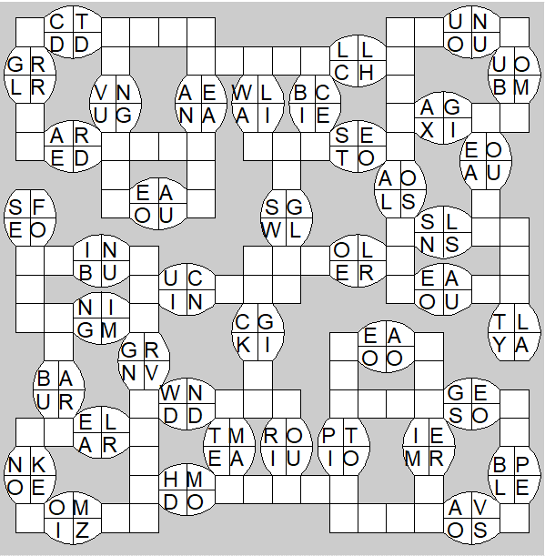 The only clues you have are the letter pairs we've given you in the grid. Each answer consists of a pair of words that share the letters that you'll write in the empty squares. In the example we've given you, we've filled in the letters S, E and W to make SINEW and SCREW. A few of the entries may have more than one possible answer, but only one will fit correctly with the rest of the puzzle.