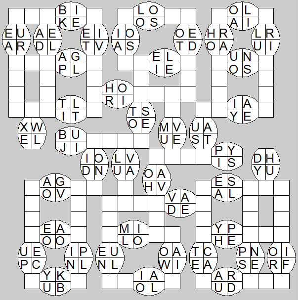 The only clues you have are the letter pairs we've given you in the grid. Each answer consists of a pair of words that share the letters that you'll write in the empty squares. In the example we've given you, we've filled in the letters S, E and W to make SINEW and SCREW. A few of the entries may have more than one possible answer, but only one will fit correctly with the rest of the puzzle.