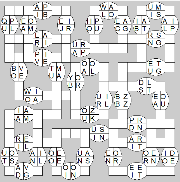The only clues you have are the letter pairs we've given you in the grid. Each answer consists of a pair of words that share the letters that you'll write in the empty squares. In the example we've given you, we've filled in the letters S, E and W to make SINEW and SCREW. A few of the entries may have more than one possible answer, but only one will fit correctly with the rest of the puzzle.