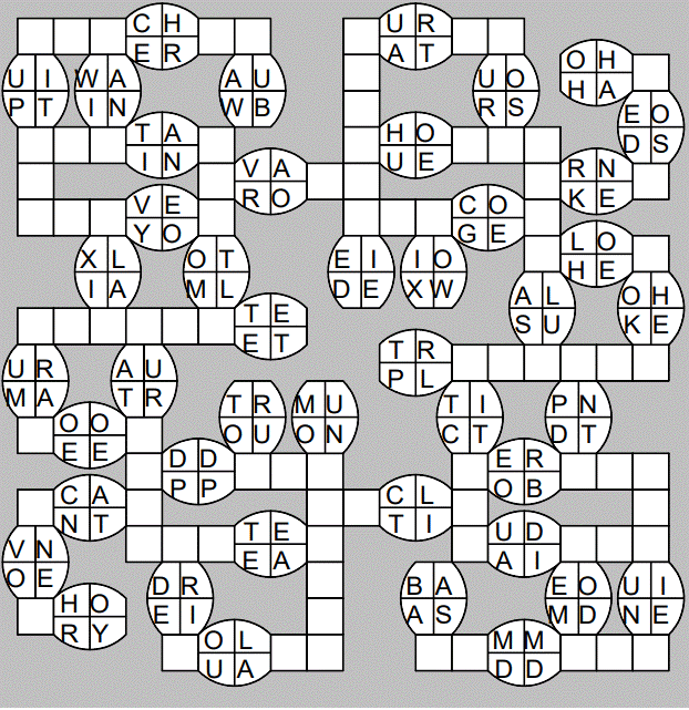 The only clues you have are the letter pairs we've given you in the grid. Each answer consists of a pair of words that share the letters that you'll write in the empty squares. In the example we've given you, we've filled in the letters S, E and W to make SINEW and SCREW. A few of the entries may have more than one possible answer, but only one will fit correctly with the rest of the puzzle.
