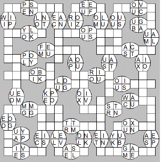 The only clues you have are the letter pairs we've given you in the grid. Each answer consists of a pair of words that share the letters that you'll write in the empty squares. In the example we've given you, we've filled in the letters S, E and W to make SINEW and SCREW. A few of the entries may have more than one possible answer, but only one will fit correctly with the rest of the puzzle.