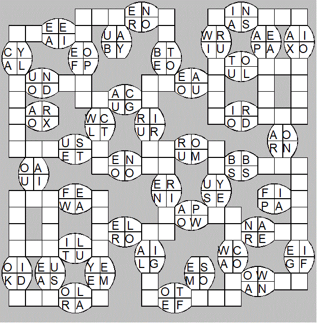 The only clues you have are the letter pairs we've given you in the grid. Each answer consists of a pair of words that share the letters that you'll write in the empty squares. In the example we've given you, we've filled in the letters S, E and W to make SINEW and SCREW. A few of the entries may have more than one possible answer, but only one will fit correctly with the rest of the puzzle.