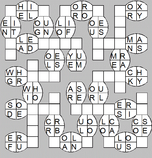 The only clues you have are the letter pairs we've given you in the grid. Each answer consists of a pair of words that share the letters that you'll write in the empty squares. In the example we've given you, we've filled in the letters S, E and W to make SINEW and SCREW. A few of the entries may have more than one possible answer, but only one will fit correctly with the rest of the puzzle.