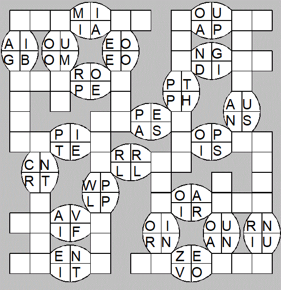 The only clues you have are the letter pairs we've given you in the grid. Each answer consists of a pair of words that share the letters that you'll write in the empty squares. In the example we've given you, we've filled in the letters S, E and W to make SINEW and SCREW. A few of the entries may have more than one possible answer, but only one will fit correctly with the rest of the puzzle.