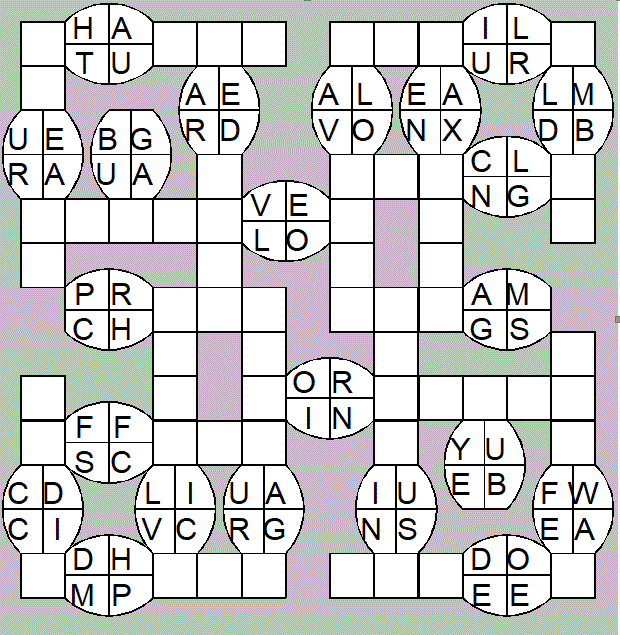 The only clues you have are the letter pairs we've given you in the grid. Each answer consists of a pair of words that share the letters that you'll write in the empty squares. In the example we've given you, we've filled in the letters S, E and W to make SINEW and SCREW. A few of the entries may have more than one possible answer, but only one will fit correctly with the rest of the puzzle.