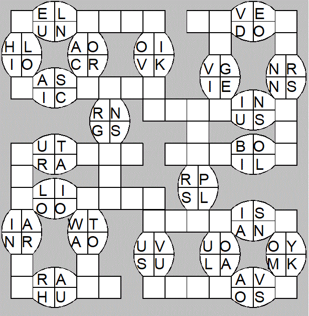 The only clues you have are the letter pairs we've given you in the grid. Each answer consists of a pair of words that share the letters that you'll write in the empty squares. In the example we've given you, we've filled in the letters S, E and W to make SINEW and SCREW. A few of the entries may have more than one possible answer, but only one will fit correctly with the rest of the puzzle.