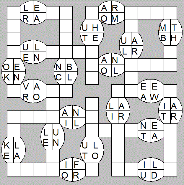 The only clues you have are the letter pairs we've given you in the grid. Each answer consists of a pair of words that share the letters that you'll write in the empty squares. In the example we've given you, we've filled in the letters S, E and W to make SINEW and SCREW. A few of the entries may have more than one possible answer, but only one will fit correctly with the rest of the puzzle.