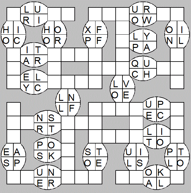 The only clues you have are the letter pairs we've given you in the grid. Each answer consists of a pair of words that share the letters that you'll write in the empty squares. In the example we've given you, we've filled in the letters S, E and W to make SINEW and SCREW. A few of the entries may have more than one possible answer, but only one will fit correctly with the rest of the puzzle.