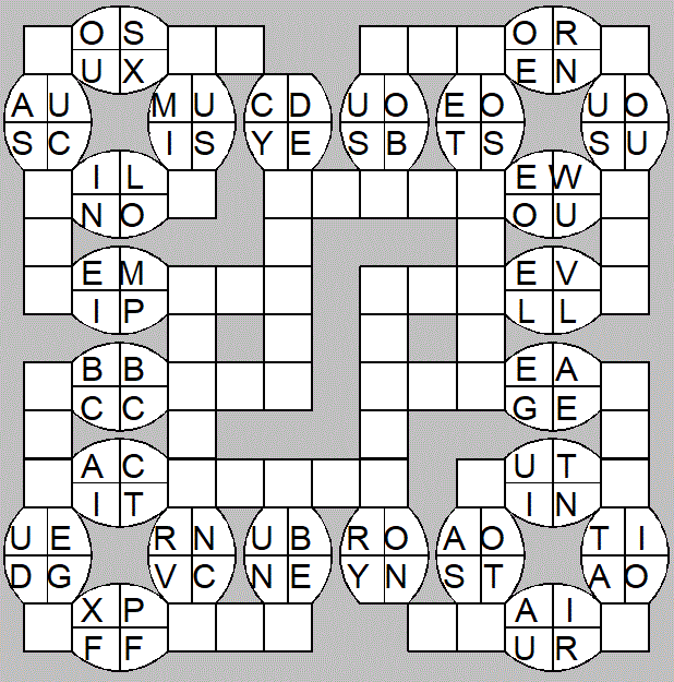 The only clues you have are the letter pairs we've given you in the grid. Each answer consists of a pair of words that share the letters that you'll write in the empty squares. In the example we've given you, we've filled in the letters S, E and W to make SINEW and SCREW. A few of the entries may have more than one possible answer, but only one will fit correctly with the rest of the puzzle.