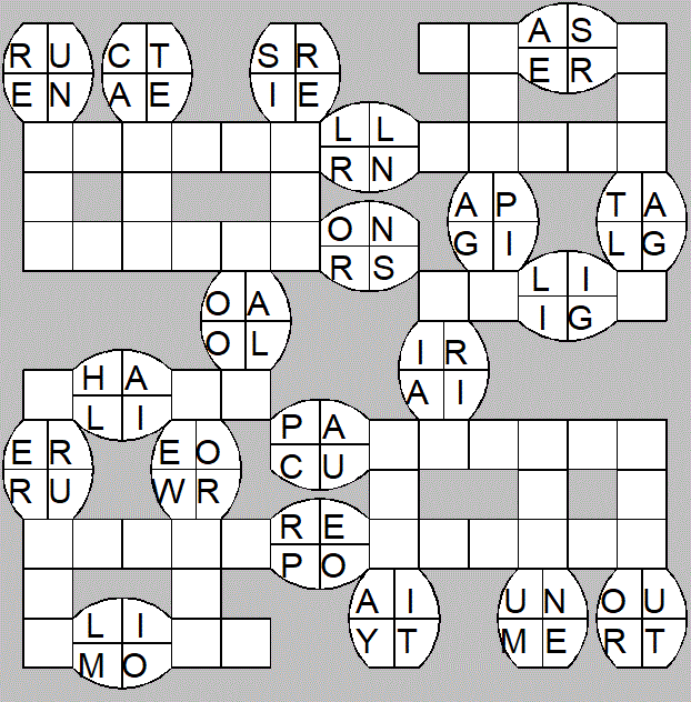 The only clues you have are the letter pairs we've given you in the grid. Each answer consists of a pair of words that share the letters that you'll write in the empty squares. In the example we've given you, we've filled in the letters S, E and W to make SINEW and SCREW. A few of the entries may have more than one possible answer, but only one will fit correctly with the rest of the puzzle.