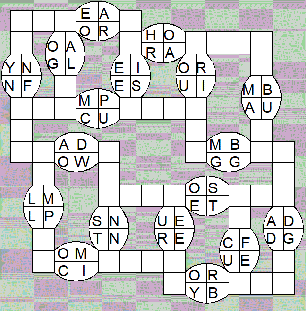 The only clues you have are the letter pairs we've given you in the grid. Each answer consists of a pair of words that share the letters that you'll write in the empty squares. In the example we've given you, we've filled in the letters S, E and W to make SINEW and SCREW. A few of the entries may have more than one possible answer, but only one will fit correctly with the rest of the puzzle.