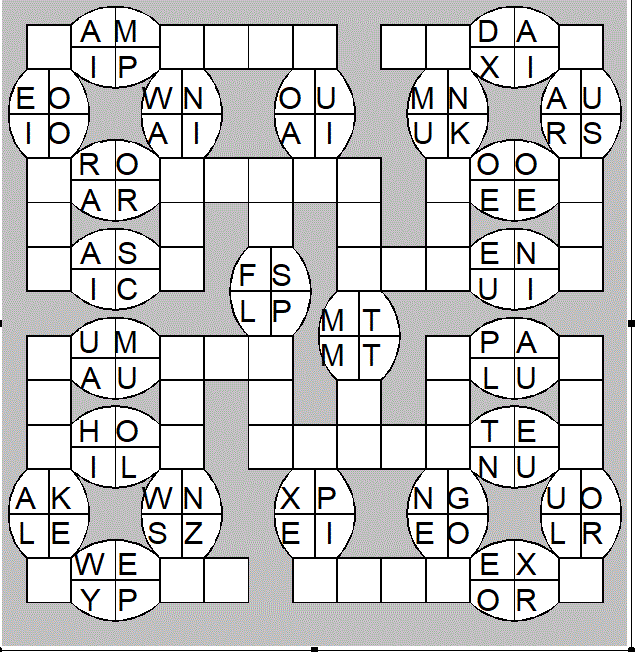 The only clues you have are the letter pairs we've given you in the grid. Each answer consists of a pair of words that share the letters that you'll write in the empty squares. In the example we've given you, we've filled in the letters S, E and W to make SINEW and SCREW. A few of the entries may have more than one possible answer, but only one will fit correctly with the rest of the puzzle.
