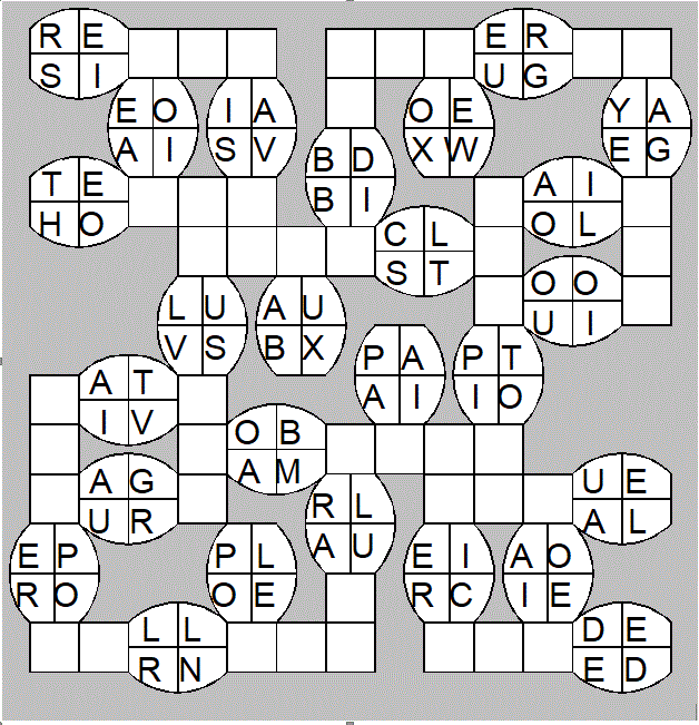 The only clues you have are the letter pairs we've given you in the grid. Each answer consists of a pair of words that share the letters that you'll write in the empty squares. In the example we've given you, we've filled in the letters S, E and W to make SINEW and SCREW. A few of the entries may have more than one possible answer, but only one will fit correctly with the rest of the puzzle.
