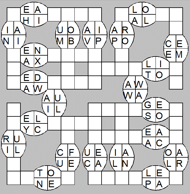 The only clues you have are the letter pairs we've given you in the grid. Each answer consists of a pair of words that share the letters that you'll write in the empty squares. In the example we've given you, we've filled in the letters S, E and W to make SINEW and SCREW. A few of the entries may have more than one possible answer, but only one will fit correctly with the rest of the puzzle.