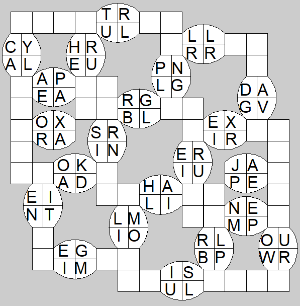 The only clues you have are the letter pairs we've given you in the grid. Each answer consists of a pair of words that share the letters that you'll write in the empty squares. In the example we've given you, we've filled in the letters S, E and W to make SINEW and SCREW. A few of the entries may have more than one possible answer, but only one will fit correctly with the rest of the puzzle.