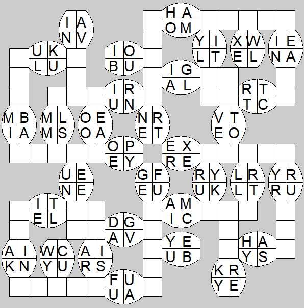 The only clues you have are the letter pairs we've given you in the grid. Each answer consists of a pair of words that share the letters that you'll write in the empty squares. In the example we've given you, we've filled in the letters S, E and W to make SINEW and SCREW. A few of the entries may have more than one possible answer, but only one will fit correctly with the rest of the puzzle.