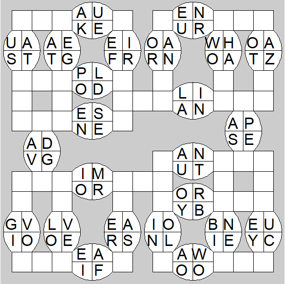 The only clues you have are the letter pairs we've given you in the grid. Each answer consists of a pair of words that share the letters that you'll write in the empty squares. In the example we've given you, we've filled in the letters S, E and W to make SINEW and SCREW. A few of the entries may have more than one possible answer, but only one will fit correctly with the rest of the puzzle.