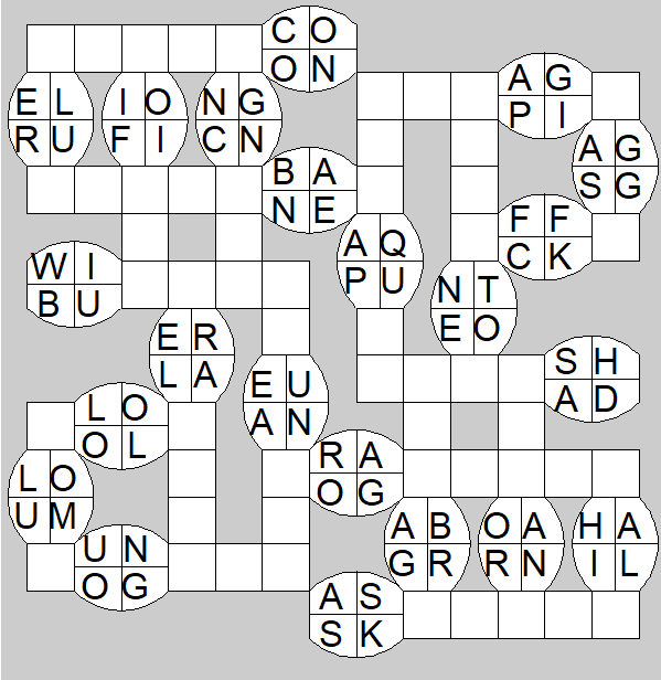 The only clues you have are the letter pairs we've given you in the grid. Each answer consists of a pair of words that share the letters that you'll write in the empty squares. In the example we've given you, we've filled in the letters S, E and W to make SINEW and SCREW. A few of the entries may have more than one possible answer, but only one will fit correctly with the rest of the puzzle.