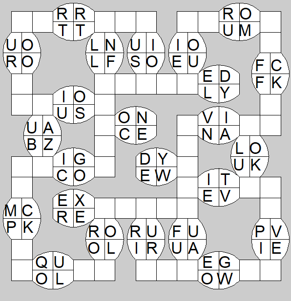The only clues you have are the letter pairs we've given you in the grid. Each answer consists of a pair of words that share the letters that you'll write in the empty squares. In the example we've given you, we've filled in the letters S, E and W to make SINEW and SCREW. A few of the entries may have more than one possible answer, but only one will fit correctly with the rest of the puzzle.