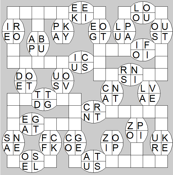 The only clues you have are the letter pairs we've given you in the grid. Each answer consists of a pair of words that share the letters that you'll write in the empty squares. In the example we've given you, we've filled in the letters S, E and W to make SINEW and SCREW. A few of the entries may have more than one possible answer, but only one will fit correctly with the rest of the puzzle.