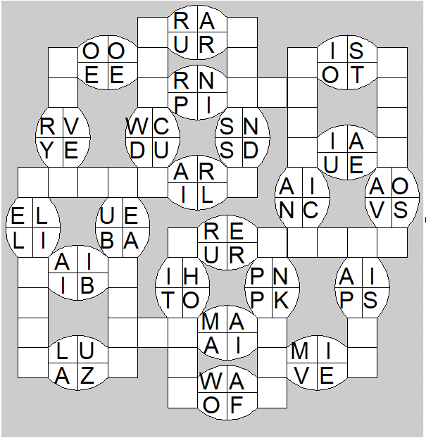 The only clues you have are the letter pairs we've given you in the grid. Each answer consists of a pair of words that share the letters that you'll write in the empty squares. In the example we've given you, we've filled in the letters S, E and W to make SINEW and SCREW. A few of the entries may have more than one possible answer, but only one will fit correctly with the rest of the puzzle.