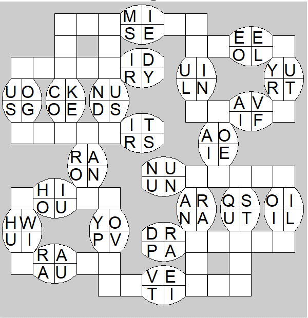 The only clues you have are the letter pairs we've given you in the grid. Each answer consists of a pair of words that share the letters that you'll write in the empty squares. In the example we've given you, we've filled in the letters S, E and W to make SINEW and SCREW. A few of the entries may have more than one possible answer, but only one will fit correctly with the rest of the puzzle.