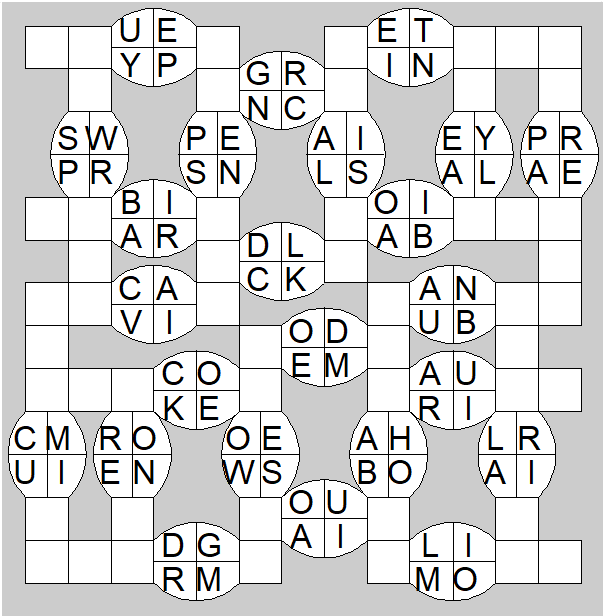 The only clues you have are the letter pairs we've given you in the grid. Each answer consists of a pair of words that share the letters that you'll write in the empty squares. In the example we've given you, we've filled in the letters S, E and W to make SINEW and SCREW. A few of the entries may have more than one possible answer, but only one will fit correctly with the rest of the puzzle.
