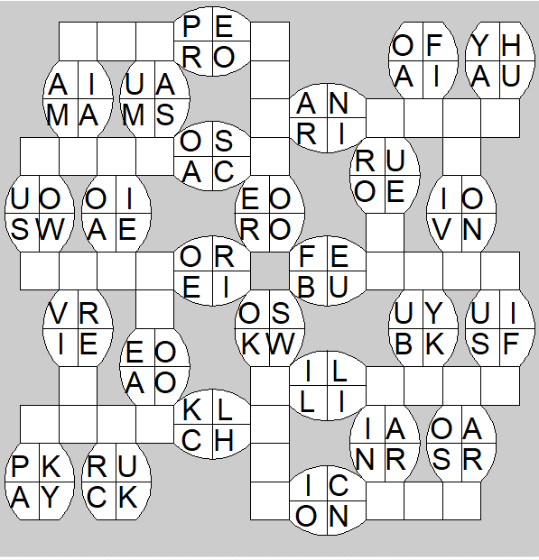 The only clues you have are the letter pairs we've given you in the grid. Each answer consists of a pair of words that share the letters that you'll write in the empty squares. In the example we've given you, we've filled in the letters S, E and W to make SINEW and SCREW. A few of the entries may have more than one possible answer, but only one will fit correctly with the rest of the puzzle.