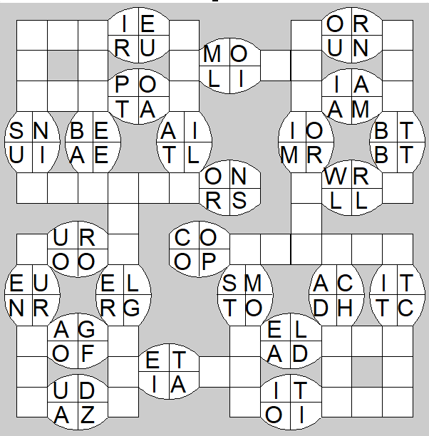 The only clues you have are the letter pairs we've given you in the grid. Each answer consists of a pair of words that share the letters that you'll write in the empty squares. In the example we've given you, we've filled in the letters S, E and W to make SINEW and SCREW. A few of the entries may have more than one possible answer, but only one will fit correctly with the rest of the puzzle.