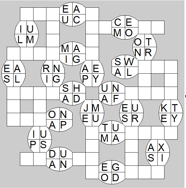 The only clues you have are the letter pairs we've given you in the grid. Each answer consists of a pair of words that share the letters that you'll write in the empty squares. In the example we've given you, we've filled in the letters S, E and W to make SINEW and SCREW. A few of the entries may have more than one possible answer, but only one will fit correctly with the rest of the puzzle.